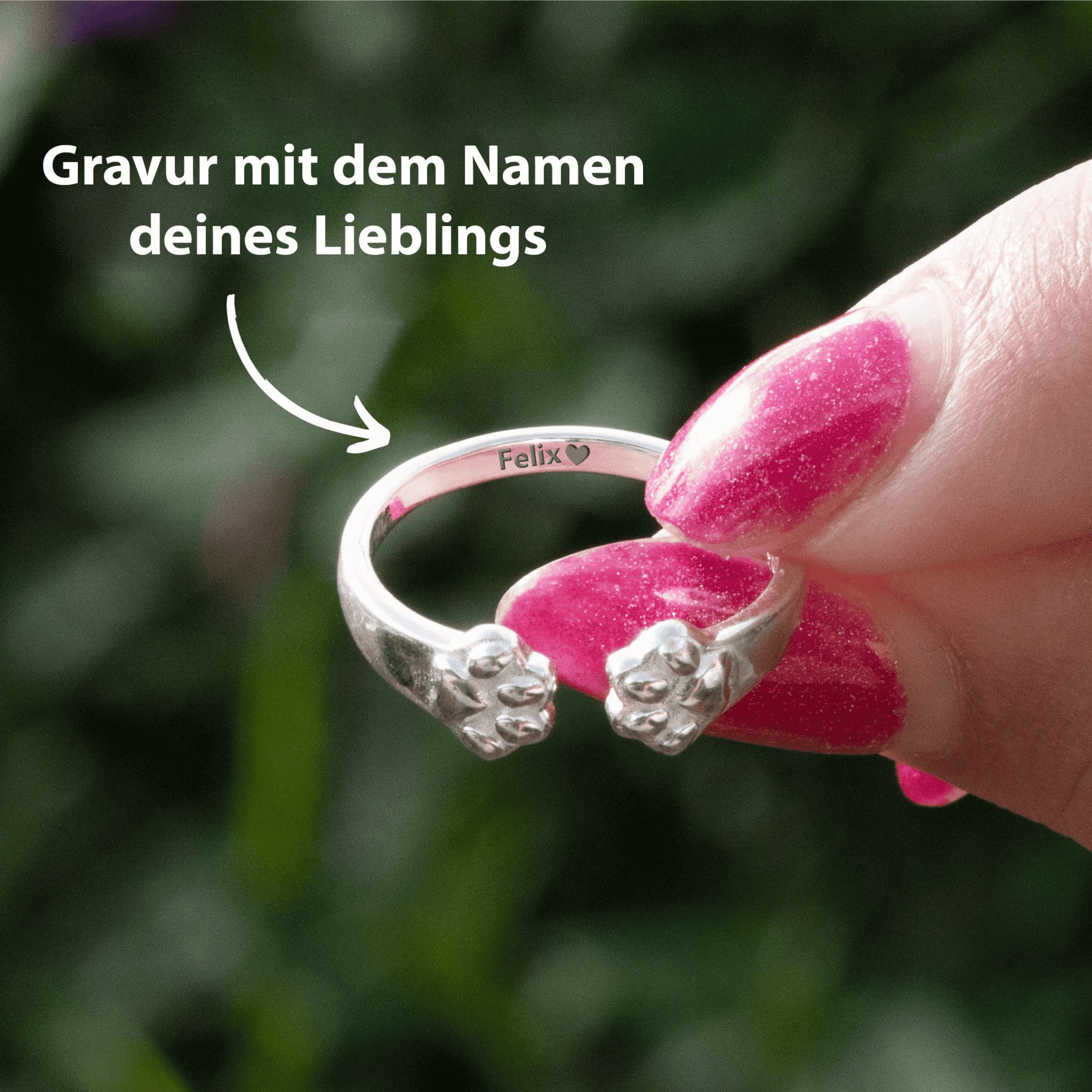 „Ich liebe meinen Pfoten-Ring. Er lässt mich meinem geliebten Buddy näher fühlen, einem 16 Jahre alten Golden Retriever. Er war alles für mich. Ich habe das Gefühl, er ist immer bei mir. Ich habe gerade einen weiteren Pfotenring für meine Schwester bei euch gekauft. Sie hat ihre Cherrie kürzlich erst an Krebs verloren. Sie war 9 Jahre alt. 💔“